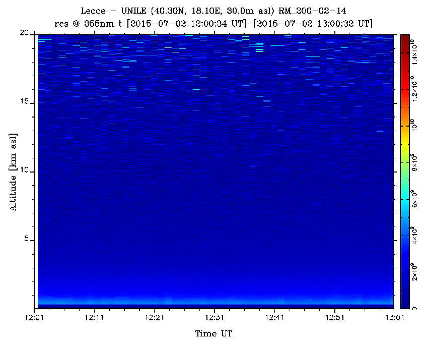 | Elastic Backscatter Range Corrected Signal. Wavelength: 355nm - Lidar Raymetrics LR111-D300 |