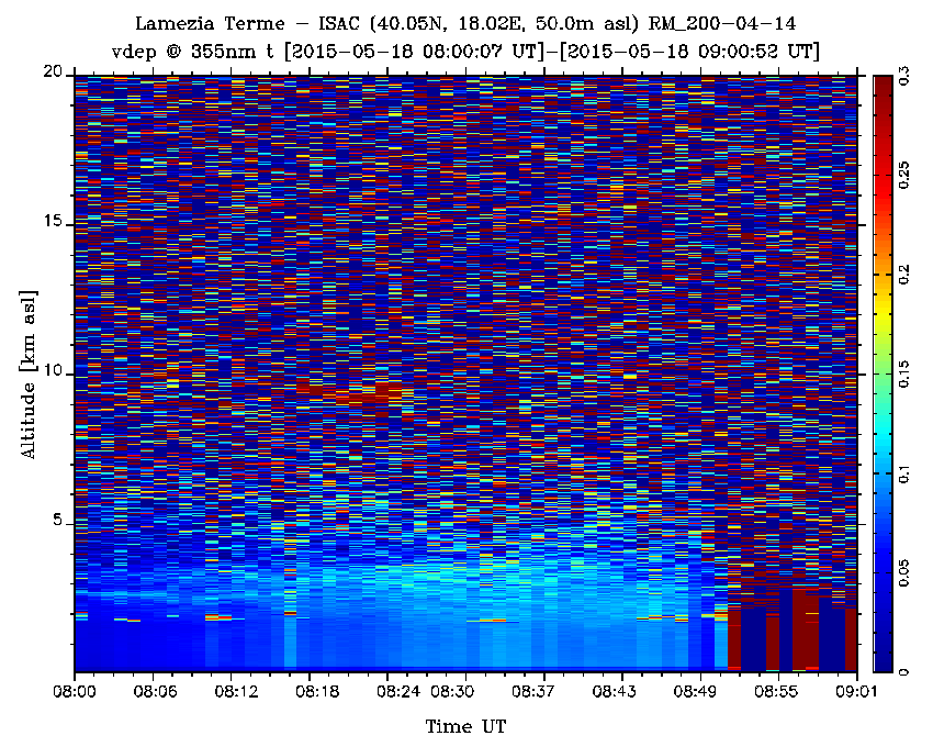 | Elastic Backscatter Range Corrected Signal. Wavelength: 355nm - Lidar Raymetrics LR111-D300 |
