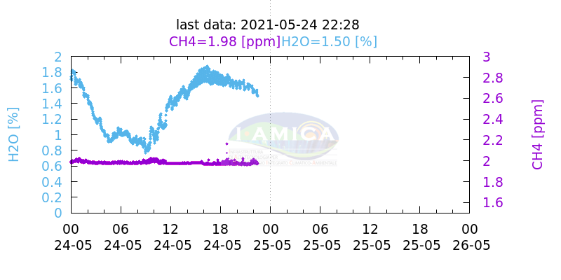 | Concentarzionie di CH4 e contenuto percentuale di H2O - Picarro |