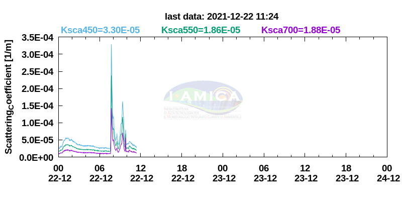 | Coefficiente di scattering rosso, verde e blu - Nephelometro TSI 3560 - Misure iniziate il 1 dicembre 2014 |