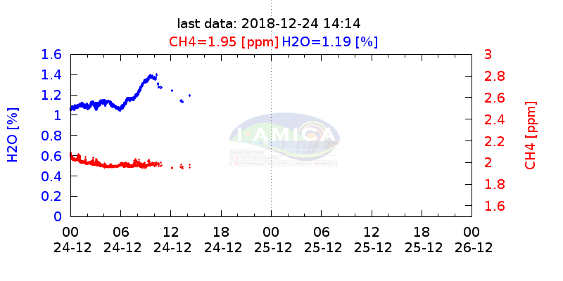 | Concentarzionie di CH4 e contenuto percentuale di H2O - Picarro |
