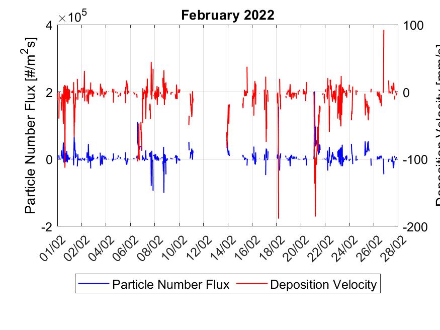 | Flusso Verticale Turbolento e Velocità di Deposizione (particelle tra 9 e 1000 nm) - Anemometro Sonico (Gill, R3) + CPC (Grimm, 5.103) |