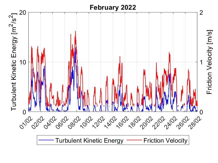 | Velocità di Frizione e Energia Cinetica Turbolenta - Anemometro Sonico (Gill, R3) |