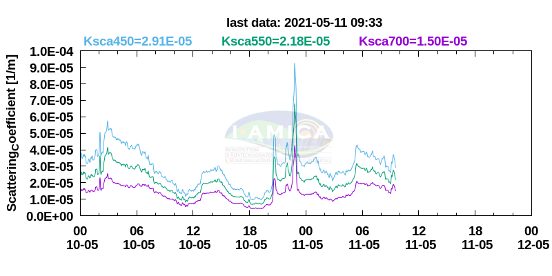 | Coefficiente di scattering rosso, verde e blu - Nephelometro TSI 3560 - Misure iniziate il 21 febbraio 2014 |