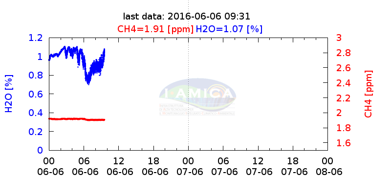| Concentrazioni di CH4 e contenuto percentuale H20 - Picarro - DATI PRELIMINARI SENZA TARATURA FINALE APPLICATA |